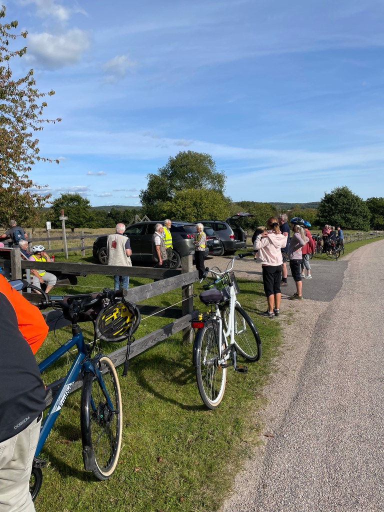 5 september Finjasjön runt med Hovdala Vänner .På en fantastisk dag med härlig bridsommar gav sig 15 cyklister med Hovdala Vänner som värd ,iväg på Finjasjön runt ! Ett flertal stopp med historiska berättelser och lite förfriskningar stod flera styrelsemedlemmar för ! Vid Skurup fick vi även se ettsvanpar med tre ungar som spatserade omkring på stubbåkern ! Efter den långa nedförsbacken mot slottet blev det en välförtjänt fikastund på yttre borggården! En lyckad dag ! Kanske ett liknande arrangemang nästa år !