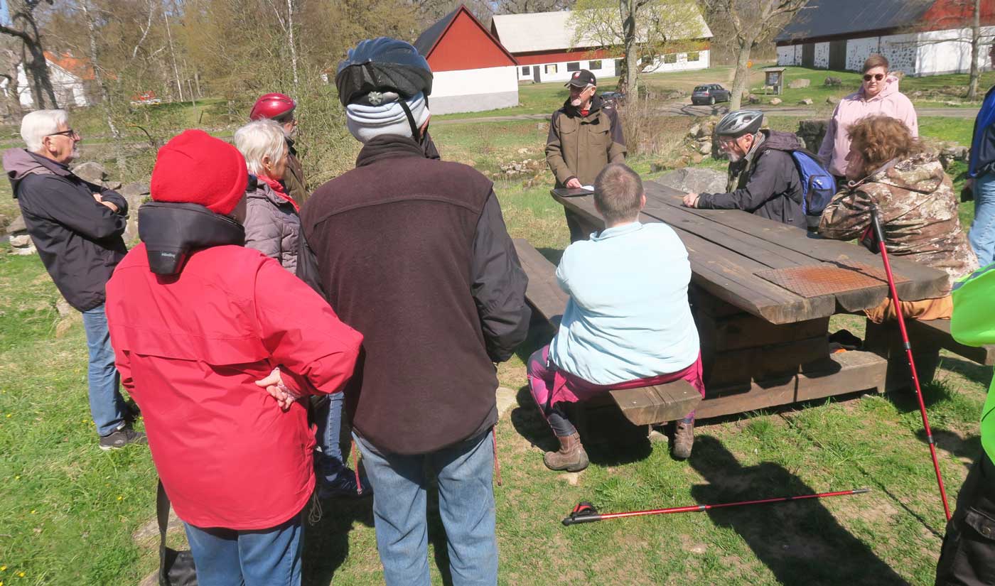 Med samling vid Sjörrödskiosken kl 1300 gav sig ett 20 tal deltagare iväg på en ca 15 km lång runda! Med stopp vid Garnisonen, Mölleröds slottsruin, ”Den äldsta boplatsen” vid Finjasjön, Baracklägret på Mölleröd, Det gamla tegelbruket i Sjörröd och sist Hästbacken med Rosamundas grav fick deltagarna lyssna till, några av våra i styrelsen kunniga guiders historiska berättelser om platsen .Turen avslutades ,efter kraftig motvind , med egen fika på yttre borggården vid Hovdala slott . Även detta år gynnades vi med fint väder ! Vi ser fram emot att detta blir en tradition som återkommer årligen ! Foto Olavi Olsson