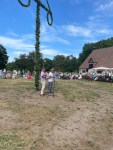Midsommarstången lövad och blomprydd restes kl 1300 och slottschefen Magnus Metz välkomnade en stor publik . Därefter blev det dans och lek kring stången till ett lokalt spelmanslag . De som inte hade egen fikakorg kunde förse sig i slottscafeet! Glasskön var lång och i slottsbutiken var det mycket besök .