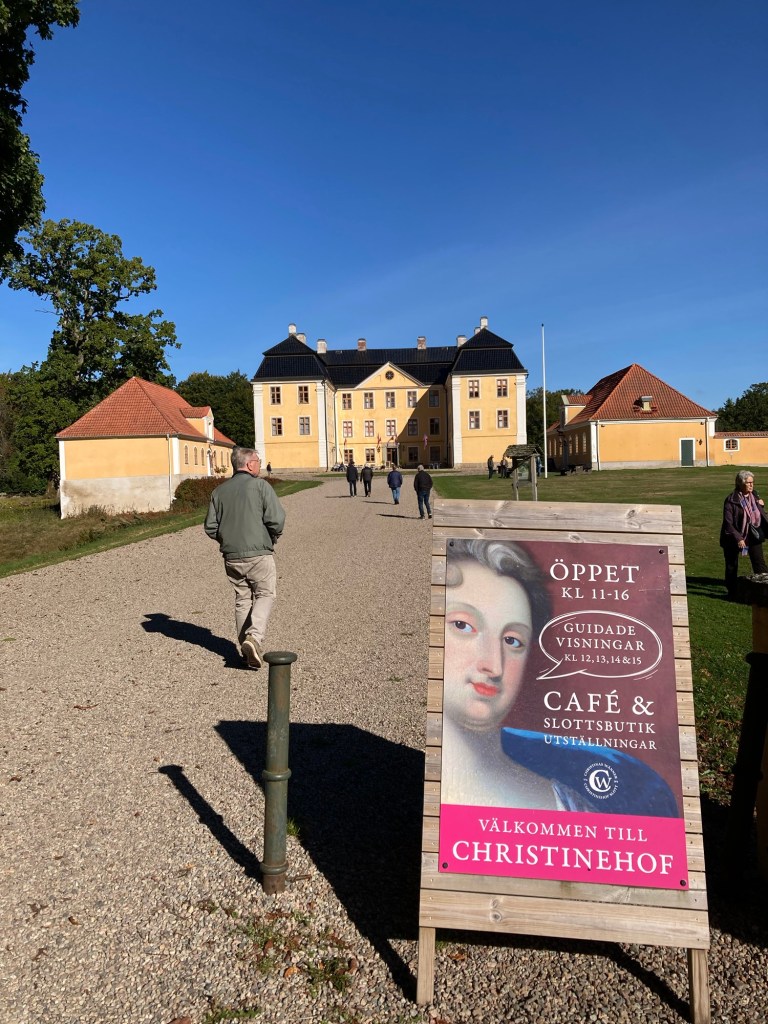 De 27 september var Hovdala vänner på en trevlig dagsutflykt. En förträfflig chaufför tog oss till Christinehofs slott. Där vi satt i parken och intog medhavd fika. Olavi Olson berättade för oss om sambandet Hovdala Slott och Alunbruket i Andrarum. Vi blev sedan guidade runt i slottet av en kunnig guid från kulturföreningen Christinas Wänner. Hon berättade inlevelsefullt om den företagsamma och då Sveriges rikaste kvinna, Christina Piper som lät bygga slottet år 1741 och som också ägde Alunbruket. Vi fick tid att på egen hand vandra runt i slottet och bekanta oss med hela släkten Piper.