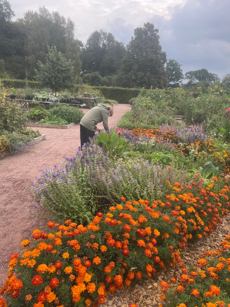 På höstmarknaden fanns möjlighet att köpa grönsaker och blommor från slottsträdgåden på Hovdala .